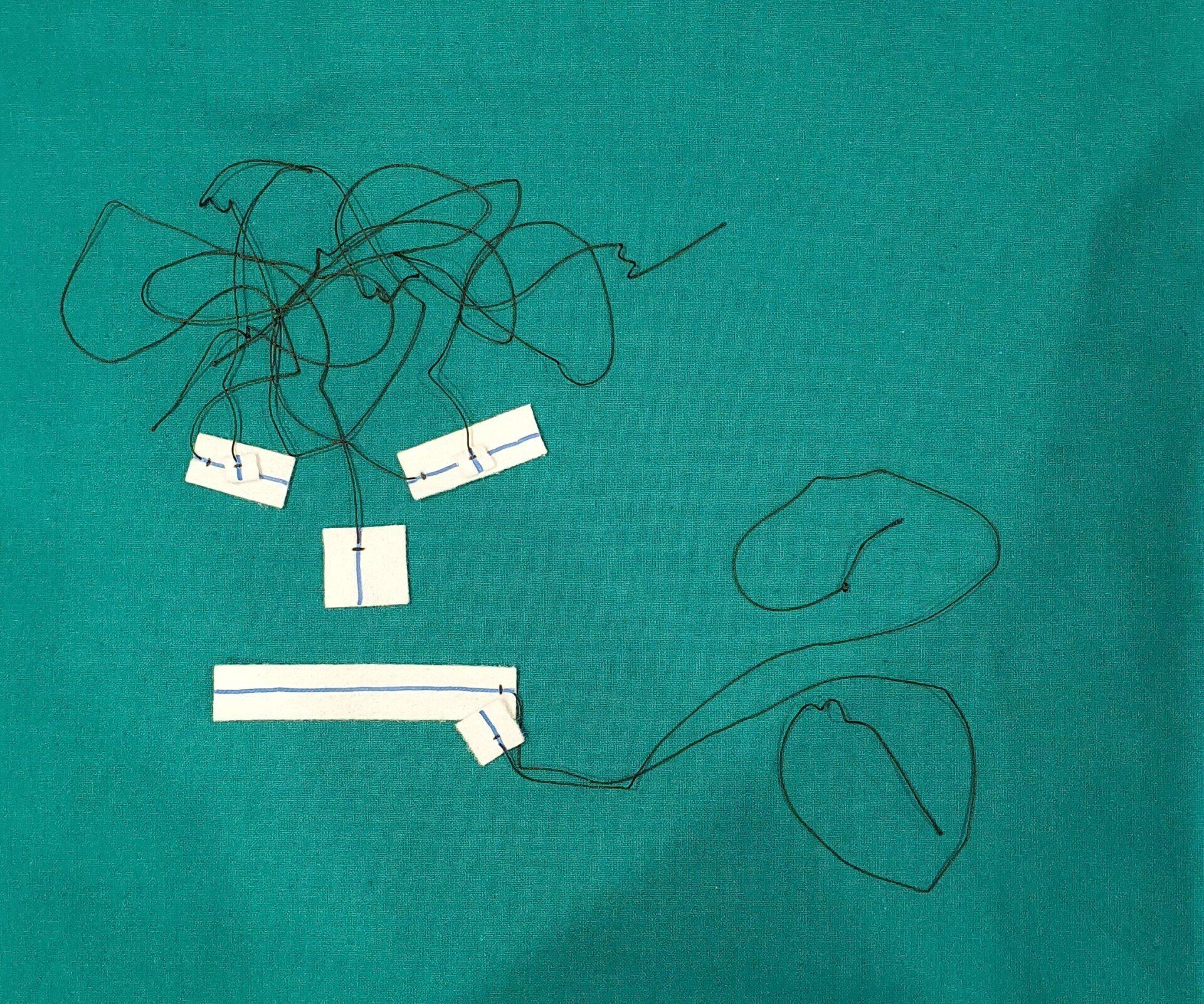 - 31 cm long black medical grade synthetic polyester yarn for identification purposes only and not for removing the pattie from the wound.